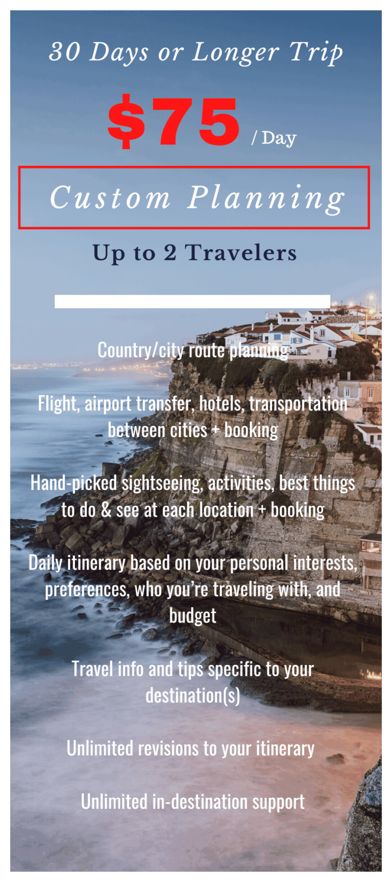 - Unlimited revisions to your itinerary before the booking process begins